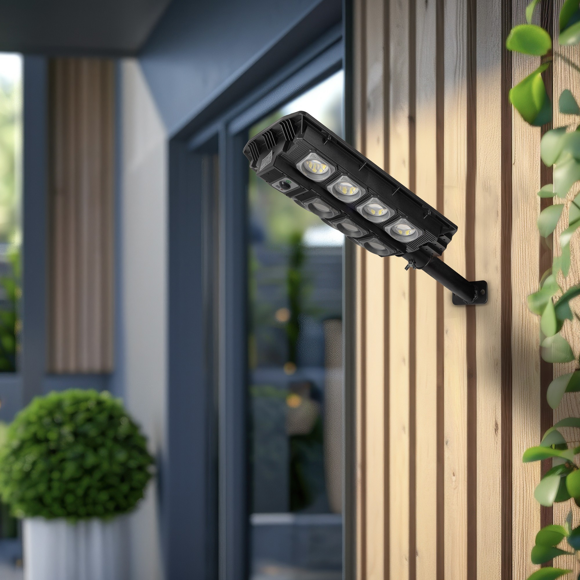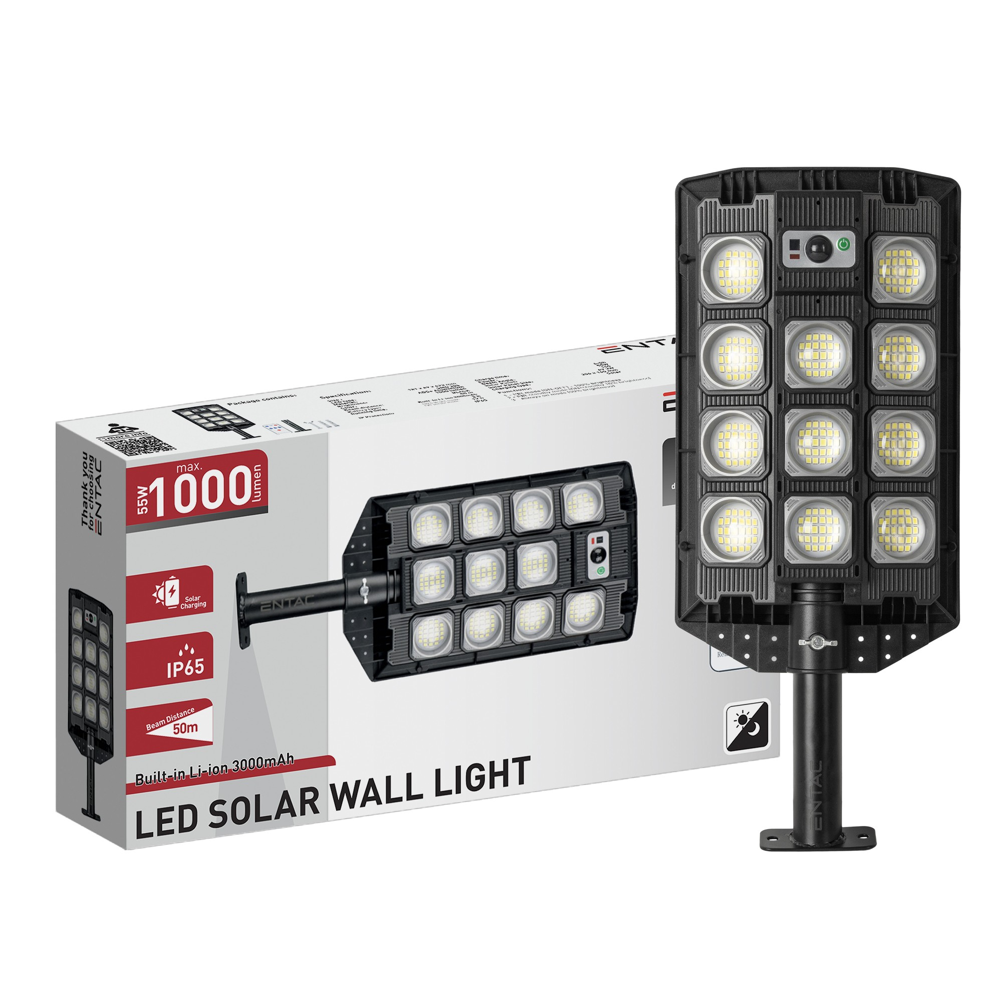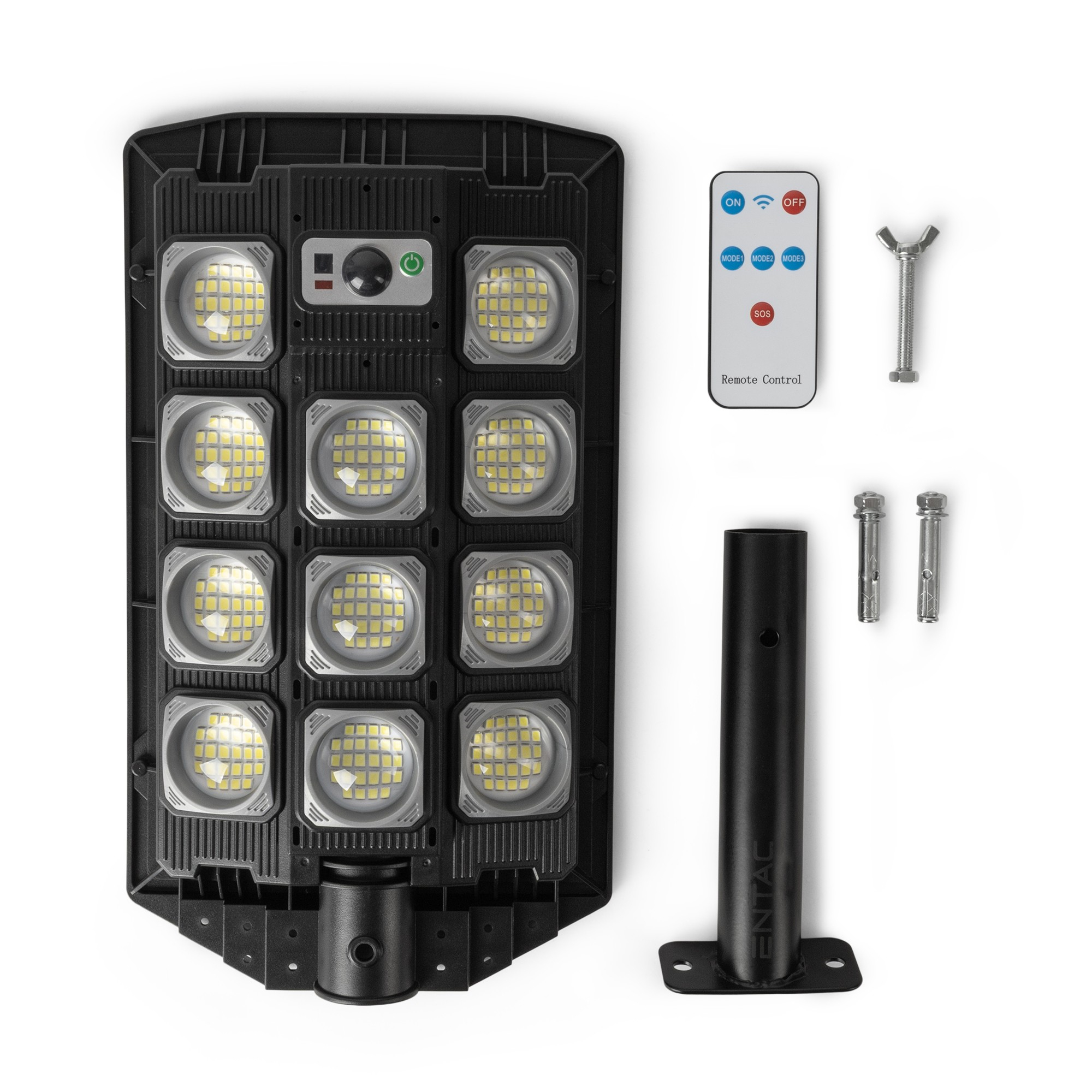 LED Solar Street Lamp with Remote Controller, Motion Sensor and automated Dimming Function, 1000lm